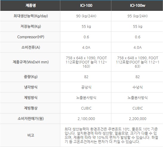 아이스트로 ICETRO 제빙기 ICI-100(공냉식) / ICI-100W(수냉식)