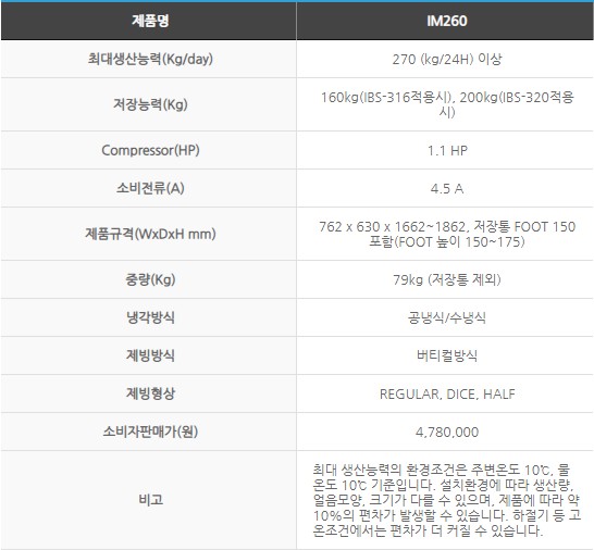 제빙기 IM260A(AD,AH) / IM260W(WD,WH)