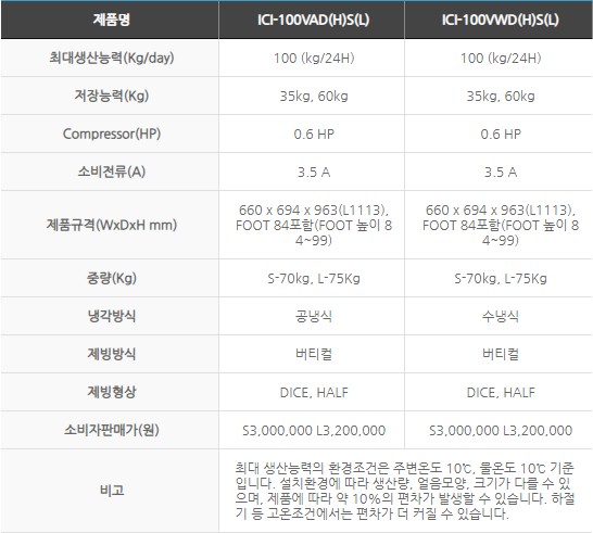버티컬얼음 제빙기 ICI-100VAD(H)S(L) (공냉식)